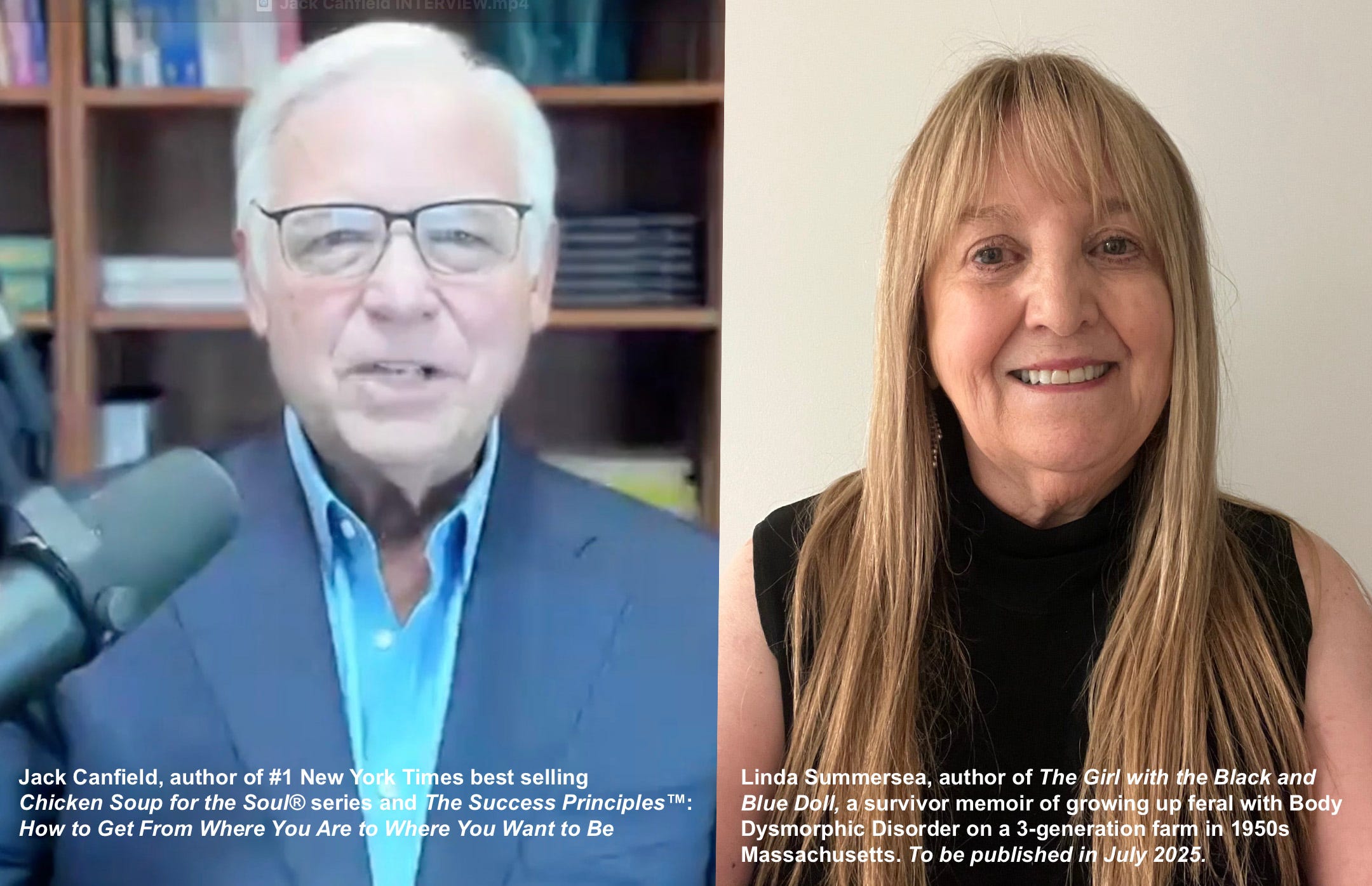 Jack Canfield interviews Linda Summersea...about THE GIRL WITH THE BLACK AND BLUE DOLLLinda SummerseaJun 15, 2025212ShareJack interviewed me in March 2025. Listen to how my voice falters a bit in the beginning—like the child Linda—and then grows confident like the woman I am today. (I didn’t plan that. LOL)0:00-5:28Audio playback is not supported on your browser. Please upgrade.